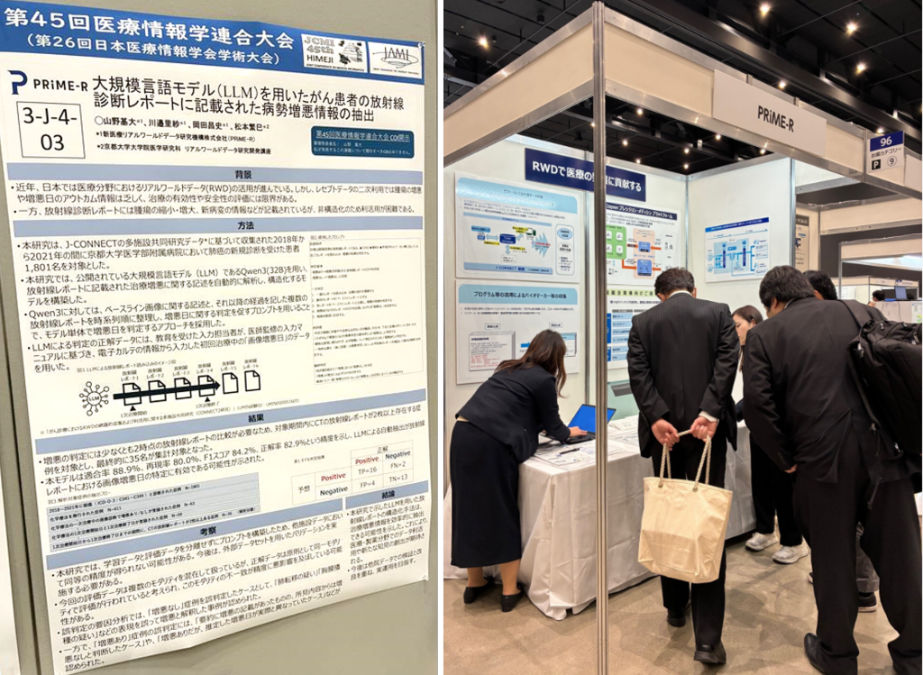 「大規模言語モデル(LLM)を用いたがん患者の放射線診断レポートに記載された病勢増悪情報の抽出」の演題にて、弊社社員 山野基大が放射線診断レポートに記載されている腫瘍の縮小・増大、新たな病変の出現などの病勢増悪に関する情報を大規模言語モデル(LLM)を用いて自動的に解析、構造化するモデルを構築し、検証を行った結果、治療増悪情報を効率的に抽出できる可能性があることを発表しました。
